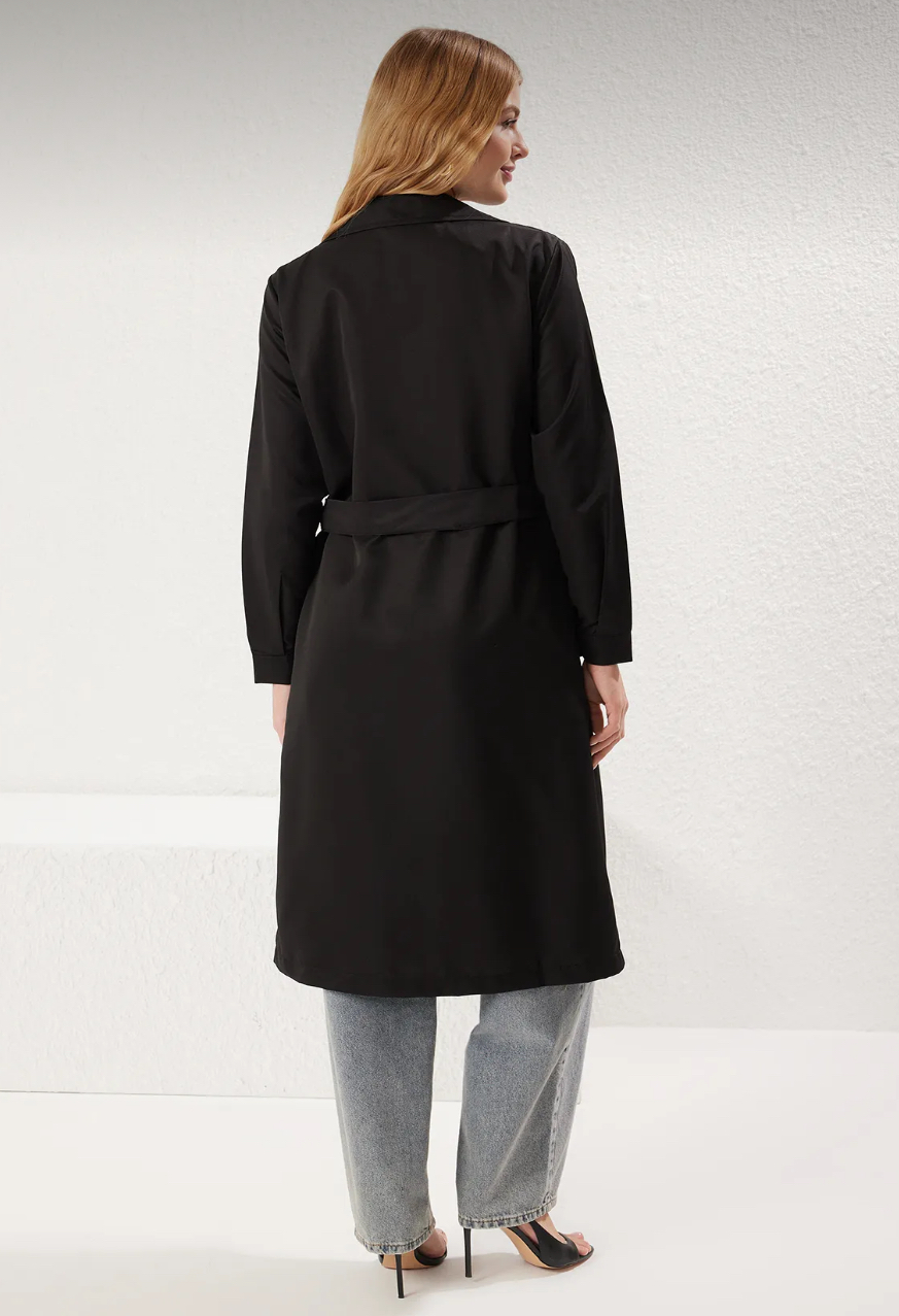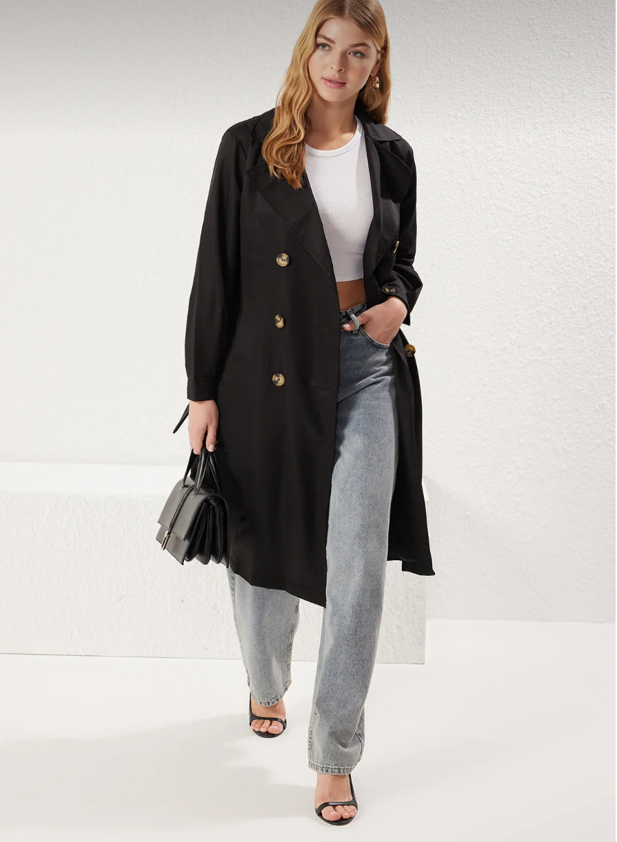 ترنچ کت بلند مشکی زنانه Turkcollection